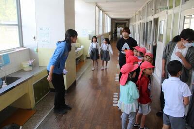 来年度本校に入学してくるT保育園の園児の皆さんが、学校見学に来てくれました。この日は、この保育園の運動会の前日で本校の体育館で行うため、下見を兼ねての見学でした。教室や和式トイレの確認をされました。来年度に向かって少しずつ動き出しています。T保育園の皆様、ありがとうございました。