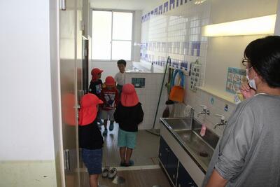 来年度本校に入学してくるT保育園の園児の皆さんが、学校見学に来てくれました。この日は、この保育園の運動会の前日で本校の体育館で行うため、下見を兼ねての見学でした。教室や和式トイレの確認をされました。来年度に向かって少しずつ動き出しています。T保育園の皆様、ありがとうございました。
