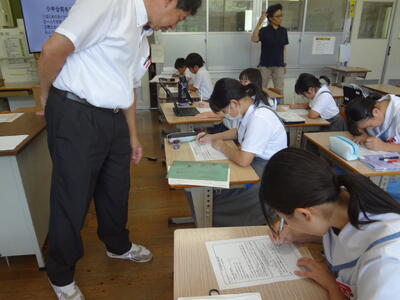 小中一貫・連携教育の一環として、小中学生が6つの班にわかれ、学び合いを行いました。