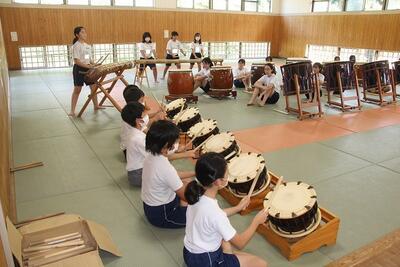 総合的な学習の時間では、小学3年生から中学3年生までを3つのコースに分かれて東陽町の伝統文化を学習しています。この日が第3回目の合同学習でした。地域の方に指導していただきました。子どもたちは覚えるのが早く、踊りの動き方や道具の動かし方、リズムの打ち方など、とても上手になりました。子どもたちの表情から充実した活動ができていることが分かりました。ご指導いただいた講師の皆様、ありがとうございます。