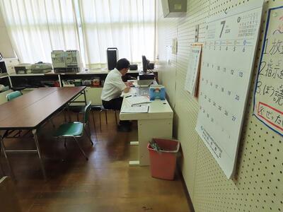 教頭先生の放送に従って自分が考えたストーリーを書いていました。