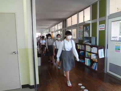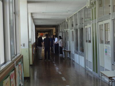 体育館側から、2・3年教室に不審者が侵入してきた場合を想定しての訓練でした。