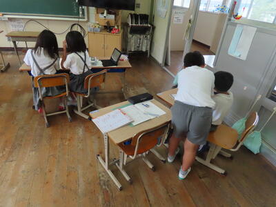 複式学級を中心に、子供たちの学習に対して地域の方々のご協力をいただきたいとコミュニティ・スクールでお願いをしたところ、早速会長のS様と副会長のO様に子供たちの様子を参観、そして支援していただきました。