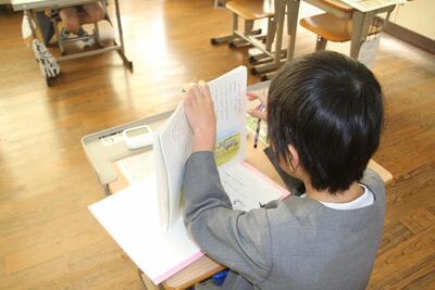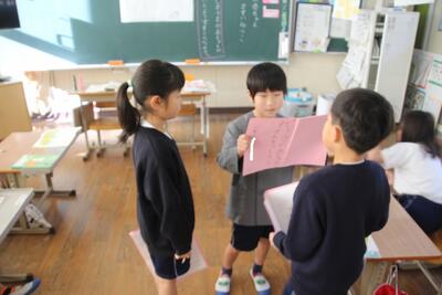 特別の教科道徳では、「ぼくにもあるかな」という教材文を使って、個性の伸長について考えました。自分の得意・不得意を考えたり、自分や友達のよさを探したりしました。自分のよさを友達から伝えてもらうと、ニコニコ笑顔になりました。