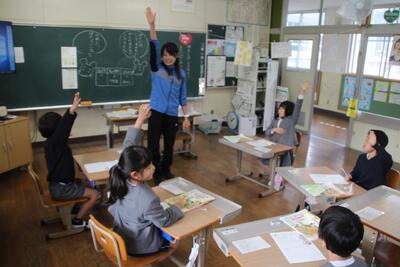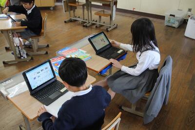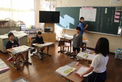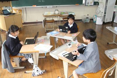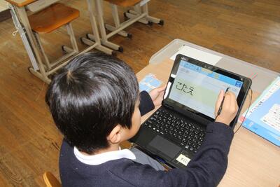 算数科では、100までのかずのけいさんの学習をしています。この日は、40+30の計算について、自分の考えをタブレットPCの中に入力し、グループでその考えを共有しました。説明の仕方や聞き方が上手になってきた1年生です。
