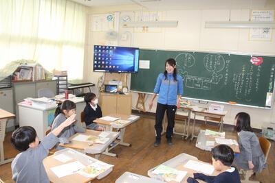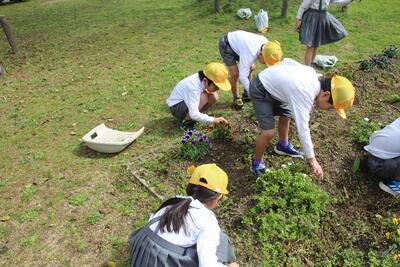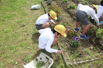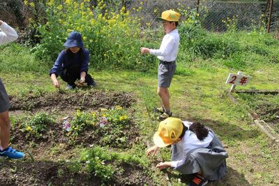 生活科で学級園の草取りを行いました。暖冬の影響で雑草がすくすく成長しています。チューリップ・ノースポール・スミレ・ビオラの春花がきれいに咲くように、その周りの雑草を丁寧に抜き取りました。あと少しでチューリップの花が咲きそうです。