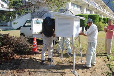 体育館前に百葉箱を設置していただきました。前日に基礎工事をしていただきました。その土台となる鉄骨を見た児童は、「何ができるんですか?」「東陽スカイツリーかな」などおしゃべりしながら、楽しみにしていました。翌日、白い箱の部分が取り付けられました。真っ白で特徴的な形が目に飛び込んできました。今後の理科学習で活用していきます。百葉箱設置にご尽力いただいた関係者の皆様、ありがとうございました。