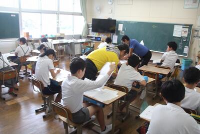 明日から2学期が始まります。そこで、2学期からの教育活動や学校行事等について先生たちで検討しました。2学期の行事・学力充実・朝の活動・保健関係・校内研修・夏休みの研修の復講等について、担当者からの説明や質疑応答をして、みんなで共通理解を図り、共通実践につなげていきます。先生たちも2学期モードにスイッチが切り替わりました。子どもたちを笑顔で迎える準備が整いました。