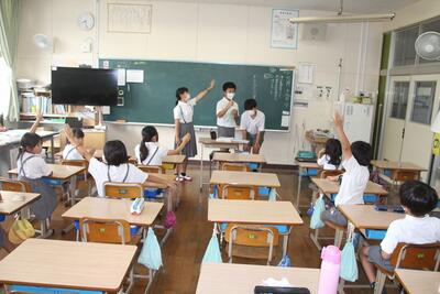 1学期末の授業参観を行いました。1年生は算数科「かずしらべ」、2年生は国語科「こんなもの見つけたよ」、3・4年生は合同での体育科「水泳」5年生は社会科「米作りのさかんな地域」、6年生は社会科「私たちのくらしと憲法」でした。たくさんの保護者の方に見守られて、子どもたちは元気いっぱい活動しました。参加してくださった保護者の皆様、ありがとうございました。