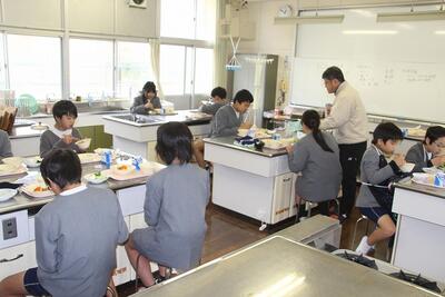 2学期に家庭科の調理実習を行いました。ゆで卵と温野菜のサラダです。感染症対策として1人1鍋で調理をして、自分の分だけ食べました。学校で学習したことを家庭で生かしてくれたらうれしいです。冬休みに家族のために作ってみましょう。