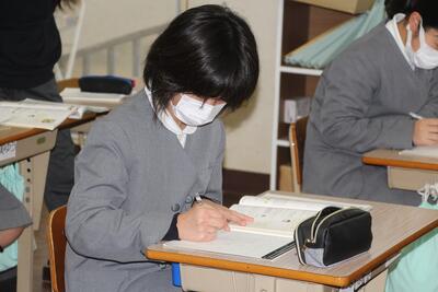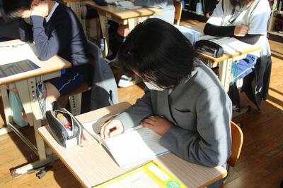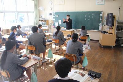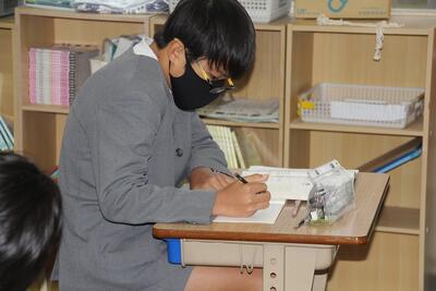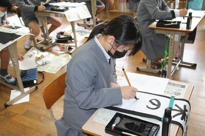 国語科(書写)では、書き初め展に向けて練習をしました。12月13日(火)に地域のOさんとTさんに書写のゲスト・ティーチャーとして指導してもらいました。そのことを思い出して、「将来の夢」を書きました。練習するたびに上手になっていく6年生です。