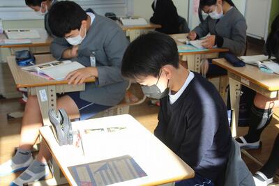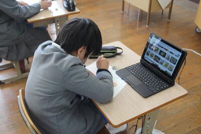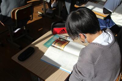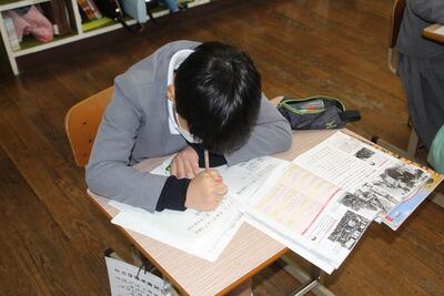 国語科では、「筆者の考えを読み取り、社会と生き方について話し合おう」という学習に入りました。教科書に掲載されている池上彰さん作「メディアと人間社会」、鴻上尚史さん作「大切な人と深くつながるために」の2つの教材文を読み比べます。共通点や相違点をまとめ、自分の考えをまとめていく学習です。筆者の2人はテレビによく出てくる人なので、子どもたちの関心が高まります。