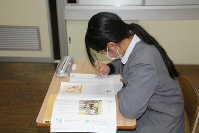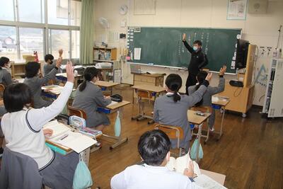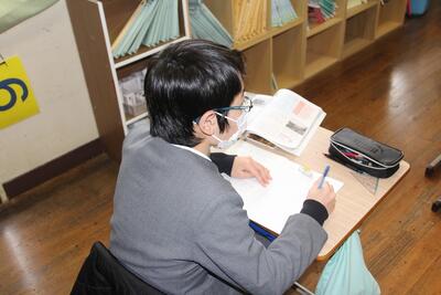 特別の教科 道徳では、「命のおにぎり」という教材を使って、親切・思いやりについて学習しました。この教材は、福島県飯館村の仮設住宅の住民が大雪で車を進めることができないドライバーのために、300個のおにぎりを届けたという実話です。困っている人を放っておけない心が自分にもあることを自覚した6年生です。