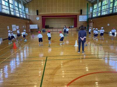 1,2年生は体育でころがしドッジボールを楽しみました。