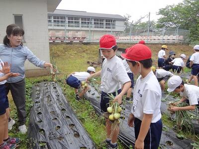 昨年末にタマネギの苗をいただいたので、学校園に植えていました。今日はその収穫でした。