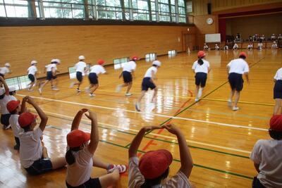 スポーツテストを行いました。この日は雨だったので、屋外で行う50m走とソフトボール投げを除く6種目を屋内で行いました。1~6年生が6つの縦割り班に分かれて実施しました。6年生のリーダーが引率したり、整列させたり、記録をしたりなど、大活躍でした。20mシャトルランではみんなで「がんばれ!」と温かい声援を送りました。6年生の皆さん、ありがとうございました。