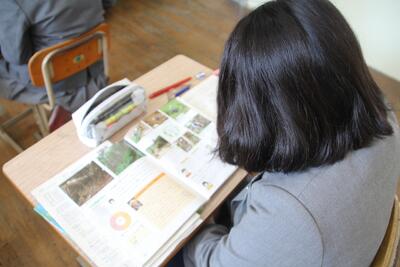 社会科では、林業についての学習をしています。私たちが暮らす東陽町には森林が多く、また、緑の少年団で木工教室を行うなど、森林は5年生にとって身近な存在です。林業にたずさわる人々の工夫や努力、森林資源が果たす役割、今後の国民生活との関連などを調べていきます。