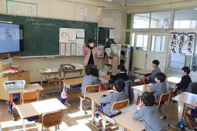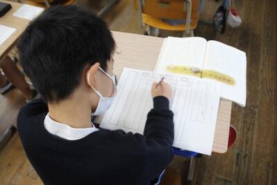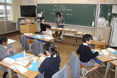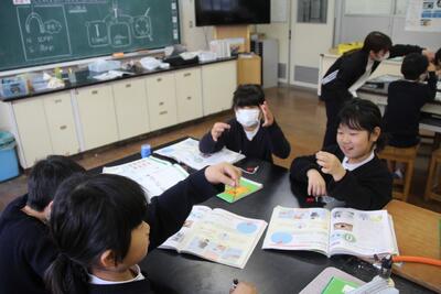 国語科では、説明文を読んで感想を持ち、伝え合う学習をしています。この日は、「中」の段落の読み取る活動を行いました。キーワード・接続語・指示語などを手がかりに、段落の関係を考えました。学習リーダーを中心に読み取ったことを伝え合いました。