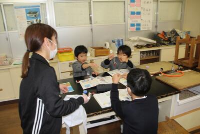 理科では、じしゃくの性質について学習しています。この日は、じしゃくに引きつけられた鉄くぎが、じしゃくのように他の鉄くぎを引きつけることを学びました。じしゃくのふしぎを楽しみました。