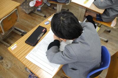 特別の教科道徳では、道徳教育郷土資料「くまもとの心」に掲載されている「かけ足登校」という教材を使って、不とう不屈について考えました。この教材は、日本マラソンの父と言われる県出身者の金栗四三さんの幼少期のエピソードをまとめたものです。学校までの往復12㎞を毎日走って登校し、苦しさを乗り越えたり呼吸法を生み出したりする四三さんの行動から、粘り強くやり遂げることを学びました。