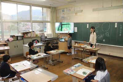 国語科では、お話の好きなところを見つけてしょうかいする学習をしています。この日は、場面の様子に着目して、登場人物の行動を具体的に想像する活動を行いました。登場人物のたぬきとおかみさんの行動を読み取りながら場面の様子を想像しました。