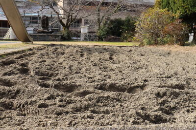 用務のT先生が、先日寒さで固まっていた砂場をほぐしてくださったので、