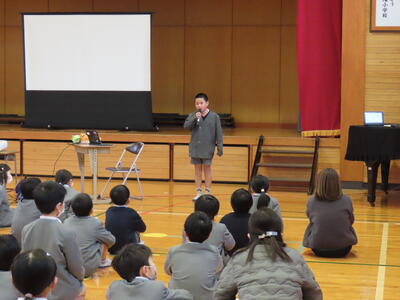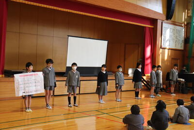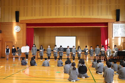 2月の生活目標の発表があり、今月の歌をみんなで歌いました。