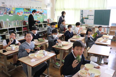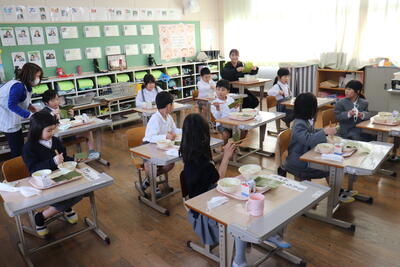 「各学級の学活での授業」「児童の作文発表」「栄養教諭による給食の歴史」