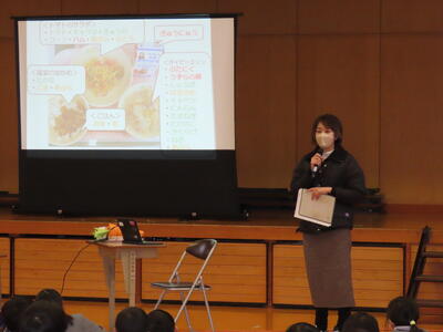 栄養教諭のM先生からのお話もあり、給食の栄養バランスについて学習できました。