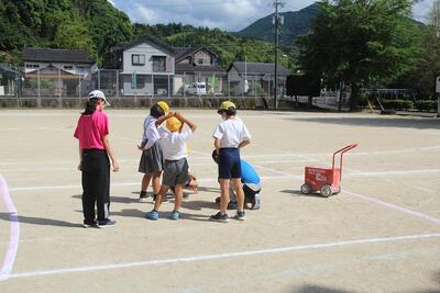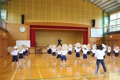4年ぶりに小中合同の運動会を行います。そのため、小中合同での練習を実施しています。今回はダンシング玉入れの紹介です。中学生のリーダーが競技の説明をしてくれました。動画を見てダンスの説明をしてもらい、中学生が手本を見せてくれました。東京ディズニーランドの「ジャンボリーミッキー」の曲に合わせて、ノリノリのダンスを見せてくれました。小学生もその雰囲気に飲み込まれて、ノリノリでダンスをしました。ダンスに夢中になり玉入れの競技を忘れそうになりました。地域の皆さん、当日はみんなでダンスしましょう。
