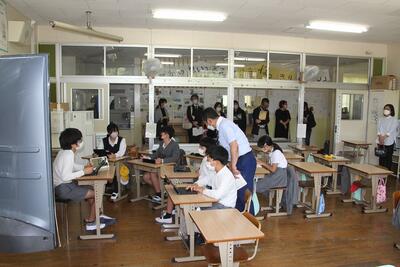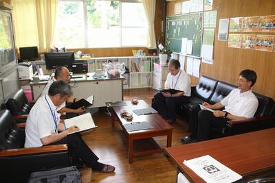 八代教育事務所の3人の先生方が来校して、全クラスの授業の様子を参観されました。特に、複式学級の授業の様子を熱心に見られました。その後、校長室にて本校の学校概要説明を行い、それについて助言をしていただきました。小中一貫・連携教育や地域とともにある学校づくりの推進、アドバイスしていただいたことを生かしながら、みんなが「LOVE☆LOVE☆LOVE」(今年度本校のスローガン)になる学校にしていきます。3人の先生方、ありがとうございました。