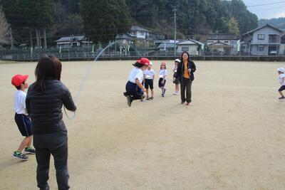 体育科では、なわとびの学習をしています。2月16日に予定している校内のなわとび大会では、縦割り班での長なわ八の字とびが種目の一つにあります。そこで、長なわの八の字とびを練習しました。入るタイミングととぶ位置・抜け出るところがポイントです。何度も練習を繰り返しました。