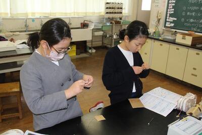 理科では、電磁石の性質についての学習が終わりました。この日は、電磁石を利用したおもちゃを作りました。コイルの巻き数を多くした強力電磁石や、磁石のしりぞけ合う力を生かした「ひらひらチョウ」を作りました。電源装置を使って多数のクリップを引きつけたり、チョウをひらひら動かしたりして、電磁石の楽しさを味わいました。