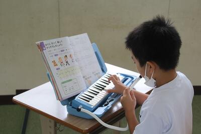 音楽科では、「山のポルカ」という曲を使って、けんばんハーモニカでの合奏の学習をしています。2拍子にあわせて、指使いを意識しながらけんばんを押さえていました。1の指・3の指など、押さえるけんばんを確認しながら演奏していた東陽っ子2年生です。