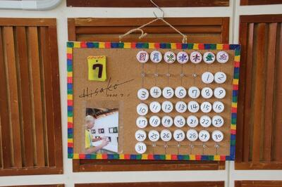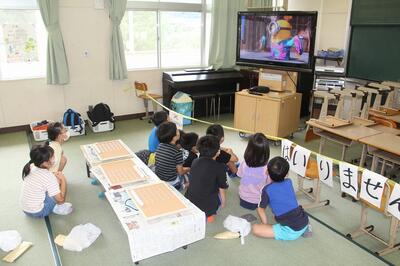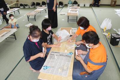 東陽キッズクラブは、学童クラブと放課後子ども教室を合わせたようなものです。平日は本校の音楽室で、土曜日は学校近くの施設で行われています。本校児童の半分の人がこのクラブの利用登録をしています。夏休み中のこの日は約20人が利用していました。コルクボードにペットボトルキャップを並べて作るカレンダーボードの製作中でした。スタッフのみなさん、いつもありがとうございます。