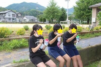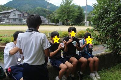 夏休みに入り、本校で中学生が陸上や部活動の練習を行っていることを紹介しました。暑い中、中学生は一生懸命活動しています。この日は、頑張っている中学生のために、中学校のPTA会長で本校の保護者でもあるOさんが、かき氷をふるまわれました。たくさん汗をかいた中学生が、おいしそうにかき氷を食べていました。Oさん、ありがとうございました。