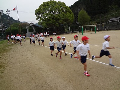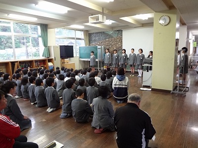 小学校、中学校から、それぞれあいさつをした後、生徒会の進行で、