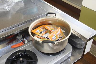 この日は断水のため、給食を作ることができませんでした。そこで、八代市教育委員会から「救給カレー」とペットボトルの水を持ってきていただきました。おいしく食べられるように、先生たちで湯煎しました。子どもたちは温かい「救給カレー」と冷たい牛乳をおいしく食べました。水のありがたさや、もしもの時に備える大切さを考える機会となりました。関わってくださった皆さん、ありがとうございました。