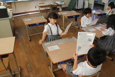 特別の教科道徳では、「はしの上のおおかみ」という教材を使って、親切・おもいやりについて考えました。意地悪なおおかみがくまとの出会いによって変わり、相手が喜ぶと自分もうれしいという思いを、役割演技を通して気づきました。思いやりの心を実践しようとする1年生です。