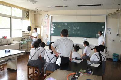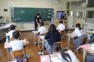 理科では、月と太陽のまとめの学習でした。月と太陽と地球の位置関係によって、月の見え方が変わることを確認しました。月の役をした人(担任・児童)が、模型を持ってみんな(地球の役)の周りを回りました。太陽に当たっているところをどのように見せるかが学習のポイントになりました。理科支援員のO先生、ありがとうございました。