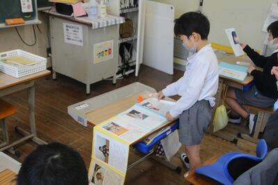 生活科では、「自分はっけん」という単元で、自分のこれまでの生活や成長を調べたり、支えてくれた人に感謝したりする学習をしています。先日行った授業参観では、保護者の方の前でできるようになったことを発表しました。この日は、これまで調べてきた自分の生活や成長をカードにまとめ、完成しました。達成感いっぱいの2年生です。