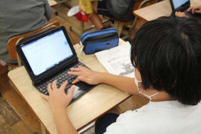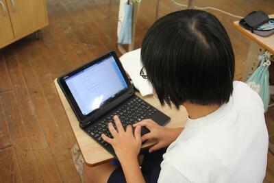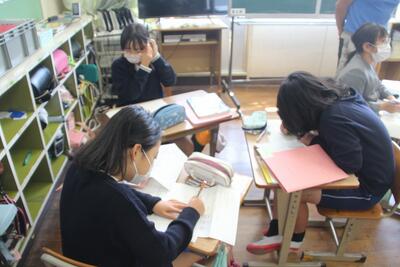 先日行った修学旅行の平和学習フィールドワークでお世話になったガイドのT様にお礼の手紙を書きました。まずは、タブレットPCを使って下書きをしました。時候のあいさつ、お礼の言葉、フィールドワークで印象に残っていることなど、自分の言葉で書いていきました。ガイドのT様がこの手紙を読んで、喜んでくださったらうれしいです。