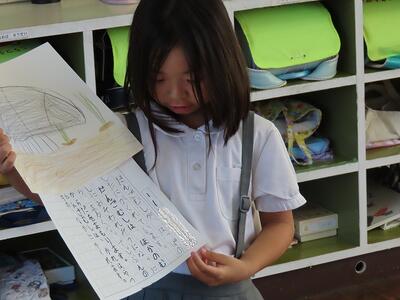 1年生は国語で学んだことを生かし、イラストも入れて説明文を書き、発表し合っていました。