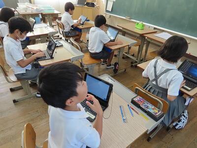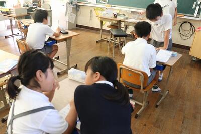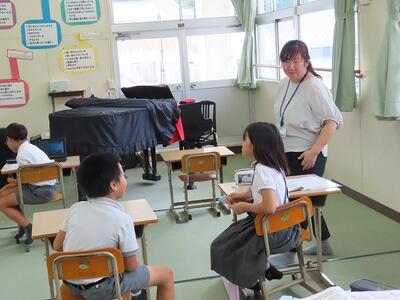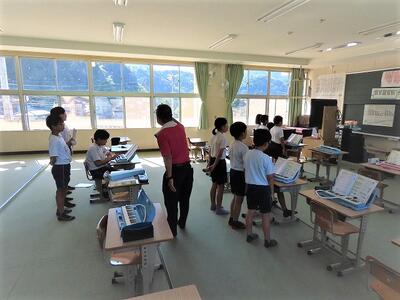 F先生には、複式学級の授業の中で個別支援を、N先生とT先生には、5年生と6年生に分けそれぞれの学年に応じた指導をしていただいています。