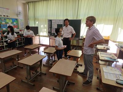 6年生は外国語活動で、ショーン先生と英語で会話を楽しんでいました。