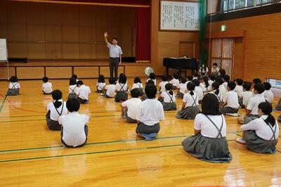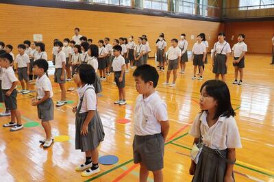 小学校の体育館では、「坂より上棒踊り」の練習を行いました。