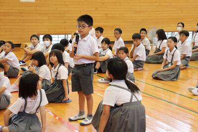 最後に校長から「学校で学んだあいさつを地域に広げよう」と話しました。