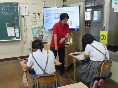 本校は東陽中学校と小中一貫・連携教育を推進しており、その取組の1つとして、中学校の各教科の先生に毎週1回5,6年生の授業支援をしていただいています。