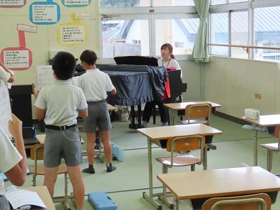 5年生は音楽の授業で、パートごとに分かれ、合唱の練習をしていました。