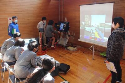 東陽中学校ではすべての生徒が自転車通学になります。そのため、小学校卒業を前に6年生を対象とした交通教室を行いました。交通安全協会のK様より自転車の正しい乗り方やルールなどについて説明してもらいました。次に、自転車乗車の実技でした。VRを使った危険予測シミュレータでの乗車と、実物を使った屋外での乗車の2パターンを行いました。左右や後方の確認やブレーキのかけ方など実際に行いました。学生服やカッパを着たり、中学校用の通学かばんを背負ったりして乗車しました。中学校生活に対応した活動になりました。交通安全協会や東陽町交通指導員など関係者の皆さん、ありがとうございました。